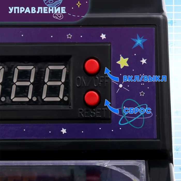 Настольная игра «Космический пинбол» — это увлекательная аркадная игрушка для детей от 3 лет. Игра стилизована под классический пинбол с электронным табло для подсчёта очков и кнопкой сброса результатов. Основная задача — не дать шарику упасть и набрать как можно больше очков.