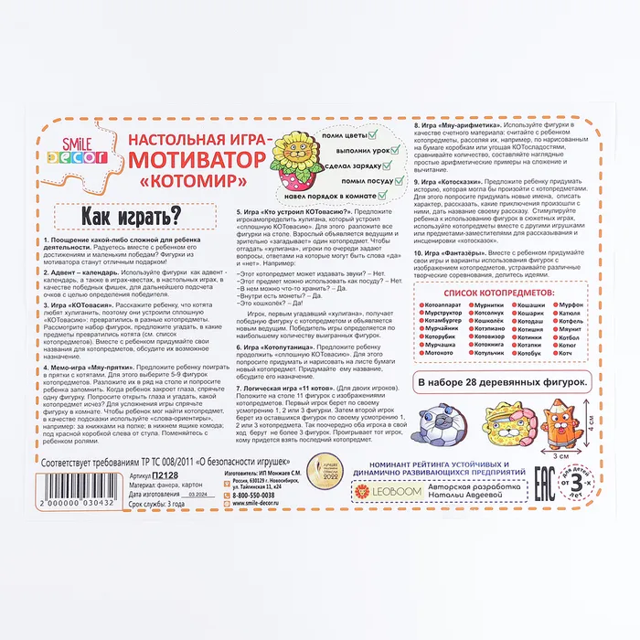 Настольная игра «Котомир» — Характеристики