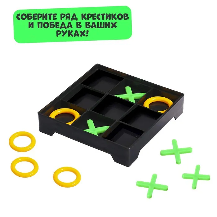 Настольная игра «Крестики-нолики» компактна и удобна для развлечения в любом месте. Она развивает смекалку, внимание и моторику.
