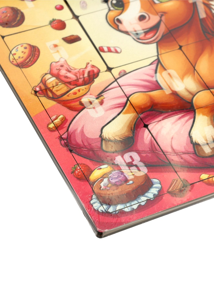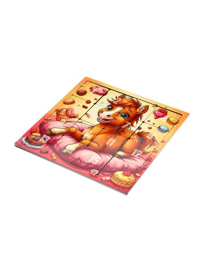 Логическая игра «Пятнашки. Жеребёнок со сладостями» — это увлекательная головоломка для детей от 3 лет, которая помогает развивать логическое мышление и навыки счёта. Изготовленная из прочного и экологичного МДФ, она станет надёжным спутником для игр и обучения.