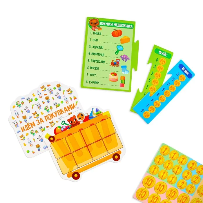 В списке покупок есть прайс-лист, который показывает, сколько стоит тот или иной продукт. Например, если бананы стоят 3 монеты, значит, игрок сможет их получить, только если заплатит эту сумму монетами любого номинала. Использованные монетки нужно поместить в свою коробочку для денег. В игре они больше использоваться не будут.