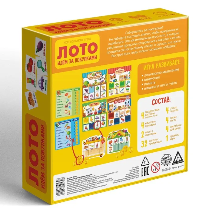 Собираетесь за покупками? Не забудьте составить список, чтобы ненароком не ошибиться. Это занимательная игра-лото, в которой участникам предстоит отправиться в магазин и купить продукты согласно своему списку. А сделать это нужно быстрее всех, ведь только так можно победить!