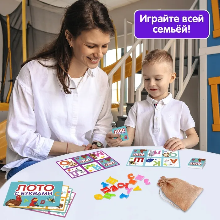 Новая версия лото — с буквами. Это отличная игра для изучения алфавита, тренировки навыка составления слов и способ весело и с пользой провести время!