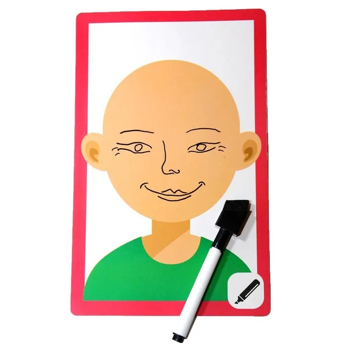 Двустороннее поле позволяет собирать эмоции из готовых элементов на магнитной стороне поля или нарисовать эмоции с помощью водорастворимого маркера на обратной стороне.