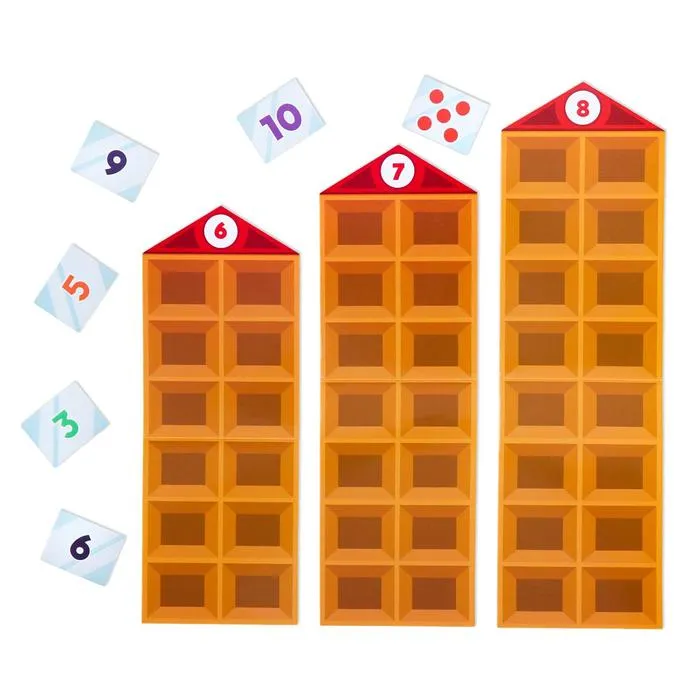 Также в наборе есть полностью пустой домик без цифры на крыше. Его используйте для изучения состава числа по точкам.