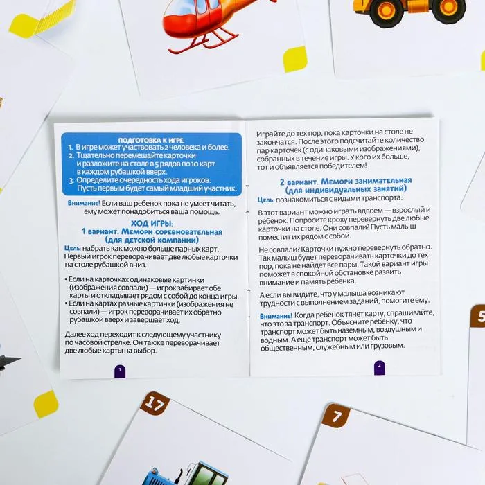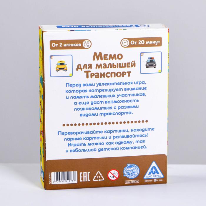 Настольная игра «Мемо для малышей. Транспорт», 50 карт — Характеристики