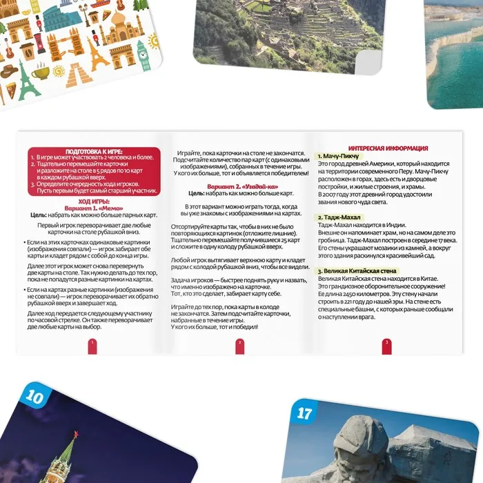В правилах вас ждёт краткое описание каждой достопримечательности и интересные факты о ней. Так можно натренировать память, внимание и кругозор!
