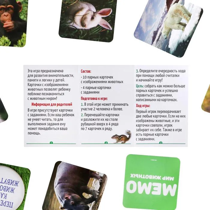 Соберите как можно больше парных карточек с изображениями животных, выполните задания и станьте победителем!