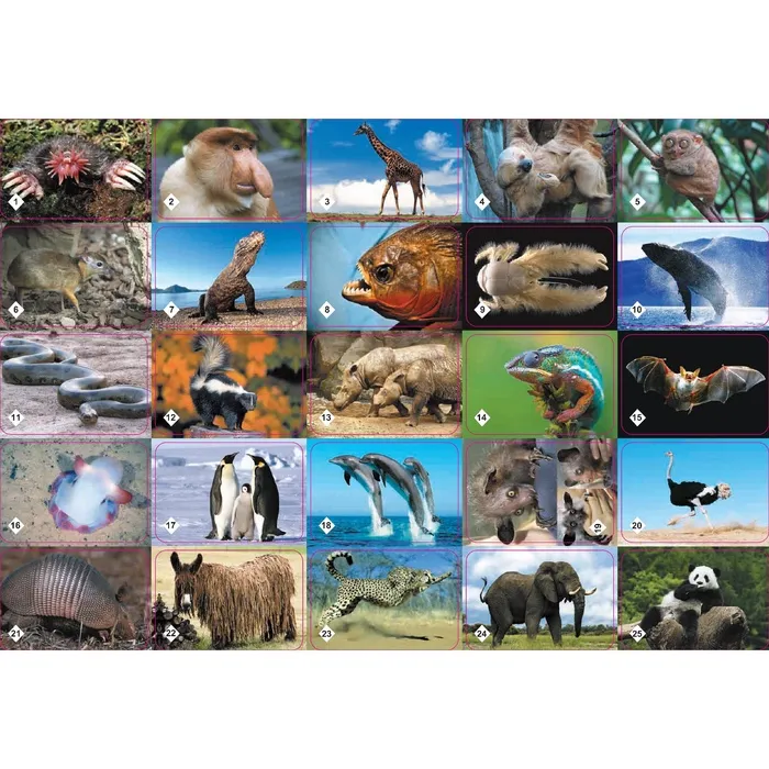 «Удивительные животные» — это разновидность игр мемо. Их особенность в том, что успех зависит не от удачи, а от способностей и стараний игроков. Набор состоит из 50-ти карточек с парным изображением зверей дикой природы.