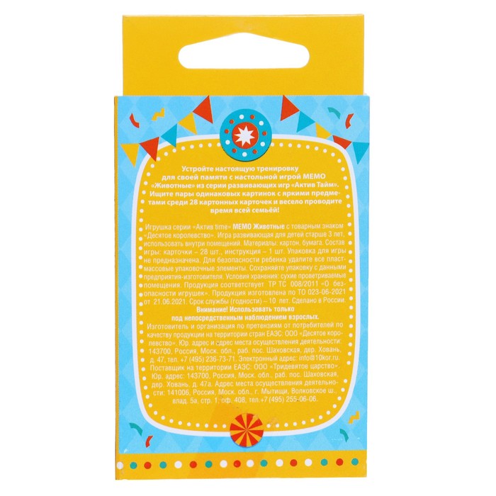 Настольная игра «МЕМО. Животные» — Характеристики