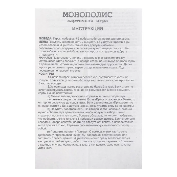 «МОНОПОЛИС» – не просто карточная игра. Она уникальна тем, что вы будете задействованы практически в каждом ходу, эта игра не даст вам заскучать ни на минуту.