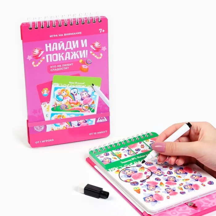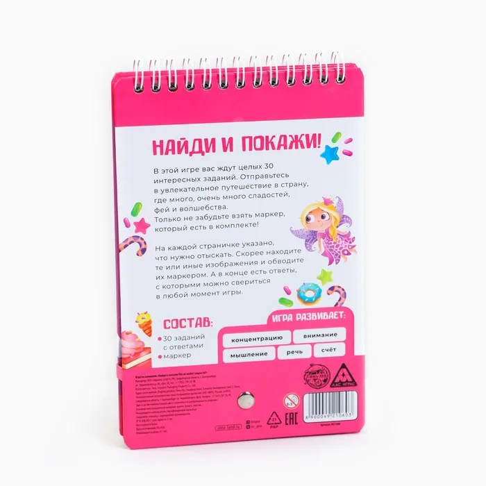 Настольная игра на логику и мышление «Найди и покажи! Кто не любит сладости?», 30 заданий, с маркером, 7+ — Характеристики