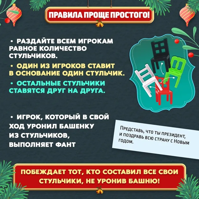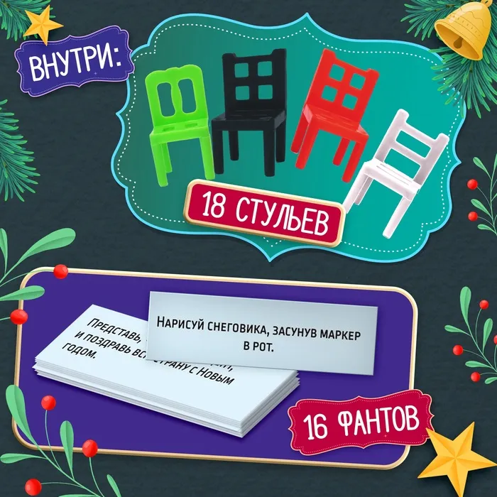 Настольная игра на ловкость «На 4 ногах», новогодняя версия, 18 стульев, 2-4 игрока, 3+ — Характеристики
