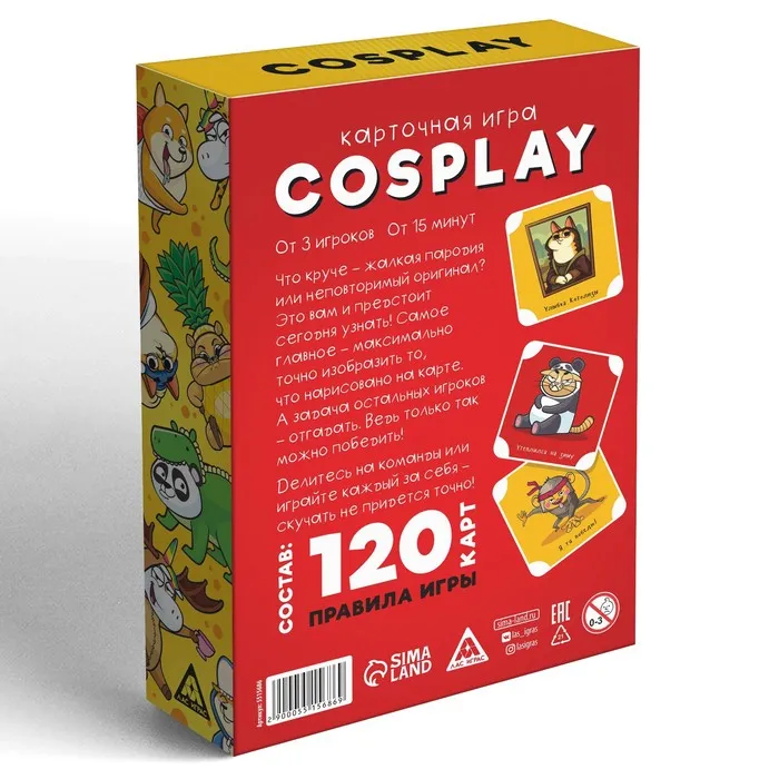 В этой игре вам предстоит заняться косплеем — то есть перевоплощаться в персонажей на карточках. Остальные участники должны отгадать, кого вы изображаете. Где жалкая пародия, а где неповторимый оригинал? Это и предстоит выяснить.