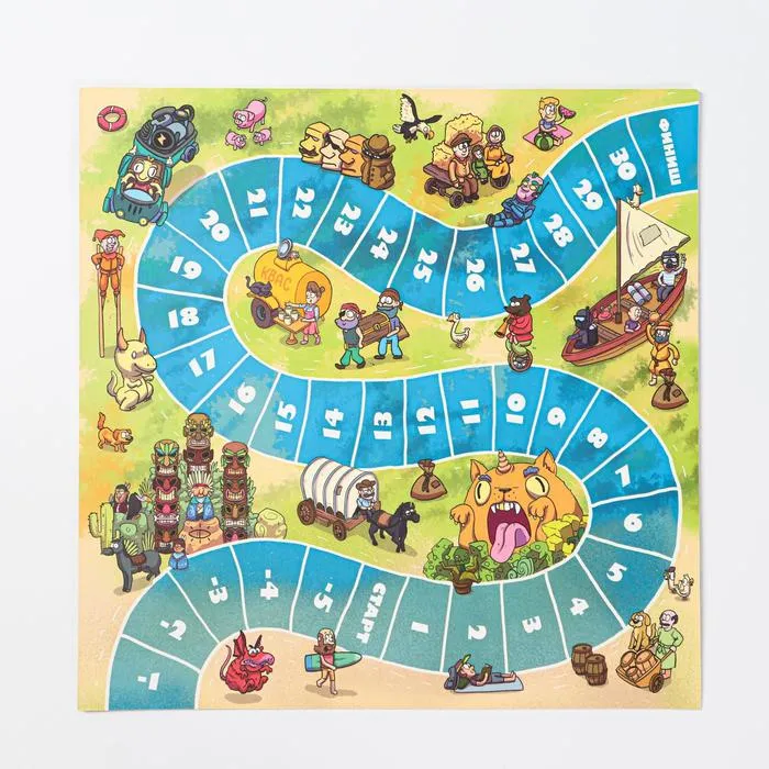 Игра заканчивается, когда фишка одного из игроков добралась до клетки «Финиш» на поле. Тот, кто это сделает, победил!