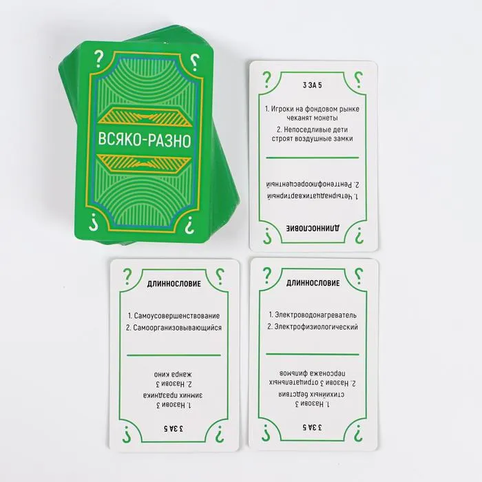 - Участники должны назвать слово или словосочетание в точности так, как написано на карточке. Только в этом случае ответ будет засчитан.