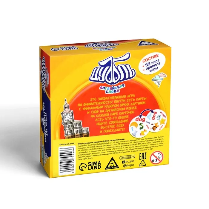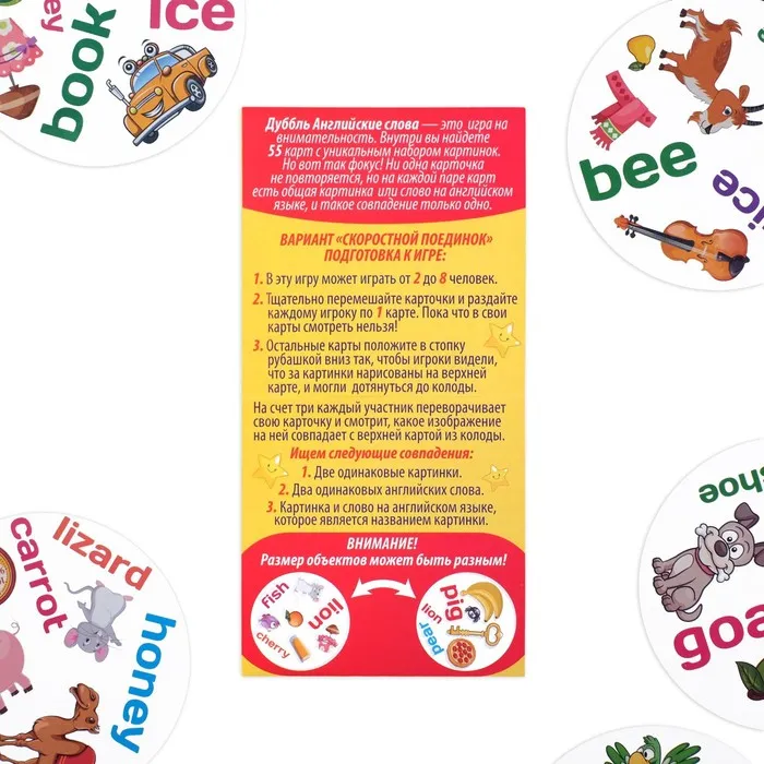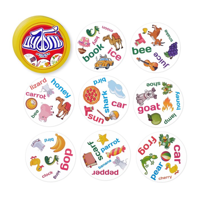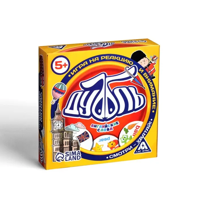 Это захватывающая игра на внимательность, в которой собрано 55 карточек. Но вот фокус! Ни одна из них не повторяется, но в каждой паре есть общая картинка — и она только одна!