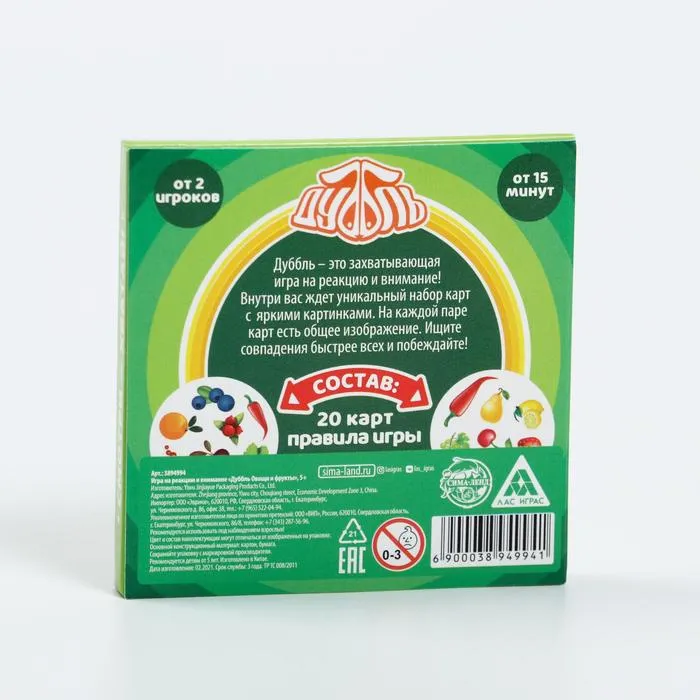 Это простая и захватывающая игра на внимание, которая познакомит маленьких участников с овощами, фруктами и ягодами со всего мира! Вас ждут карты с уникальным набором ярких картинок. На каждой паре карт есть общее изображение. Ищите совпадения быстрее всех и побеждайте!