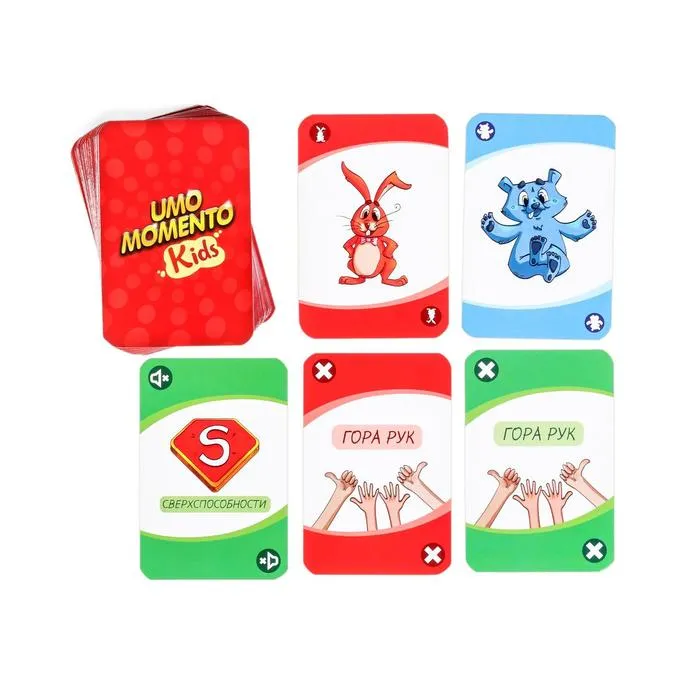 Перед вами увлекательная игра для самых внимательных и шустрых ребят. Яркие цвета, изображения забавных животных и весёлые задания — вот что делает UNO momento такой уникальной и смешной. В ней вам предстоит следить за изображениями на картах, выполнять забавные фанты и устроить настоящее соревнование на ловкость и внимательность. На старт, внимание, начали!
