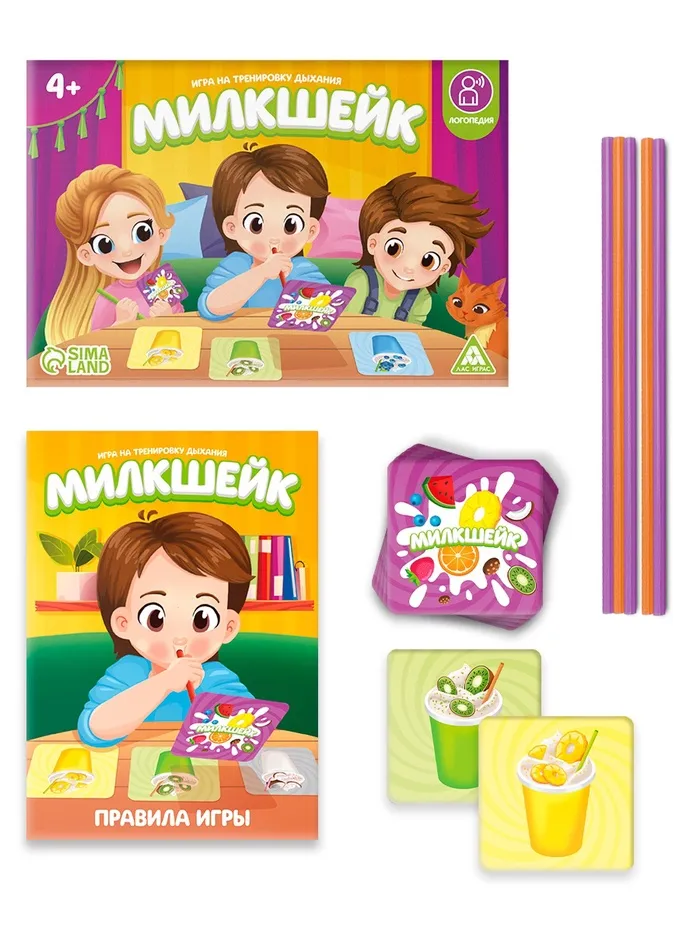 Настольная игра на тренировку дыхания «Милкшейк», 60 карт, 5 трубочек, 4+ — Характеристики