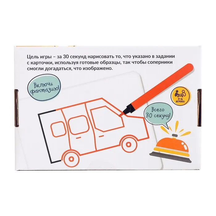 Задача участника — за 30 секунд нарисовать то, что указано в задании с карточки, используя изображенные детали будущей картинки. Задача соперников — отгадать шедевры юного художника.