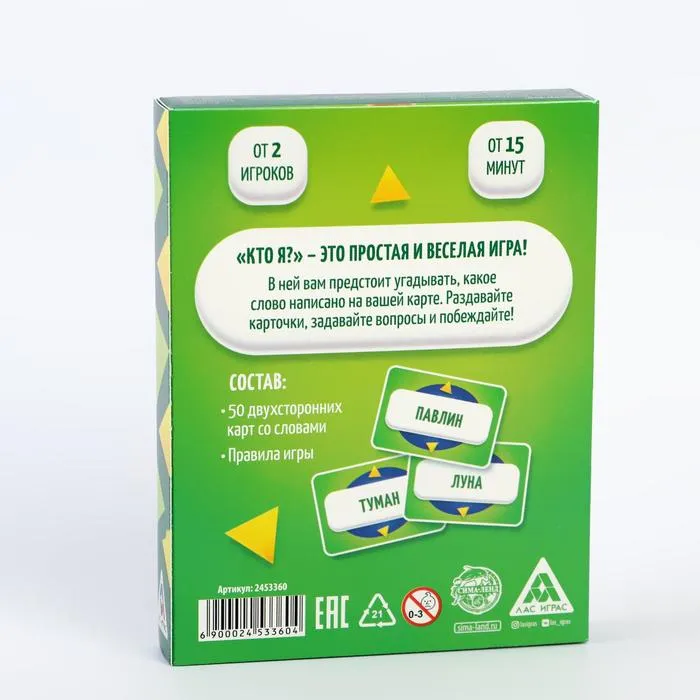 В этой весёлой игре вам предстоит угадывать, какое слово написано на вашей карточке. Раздавайте их, задавайте вопросы и побеждайте! Вас ждут 100 совершенно разных слов и простые правила.