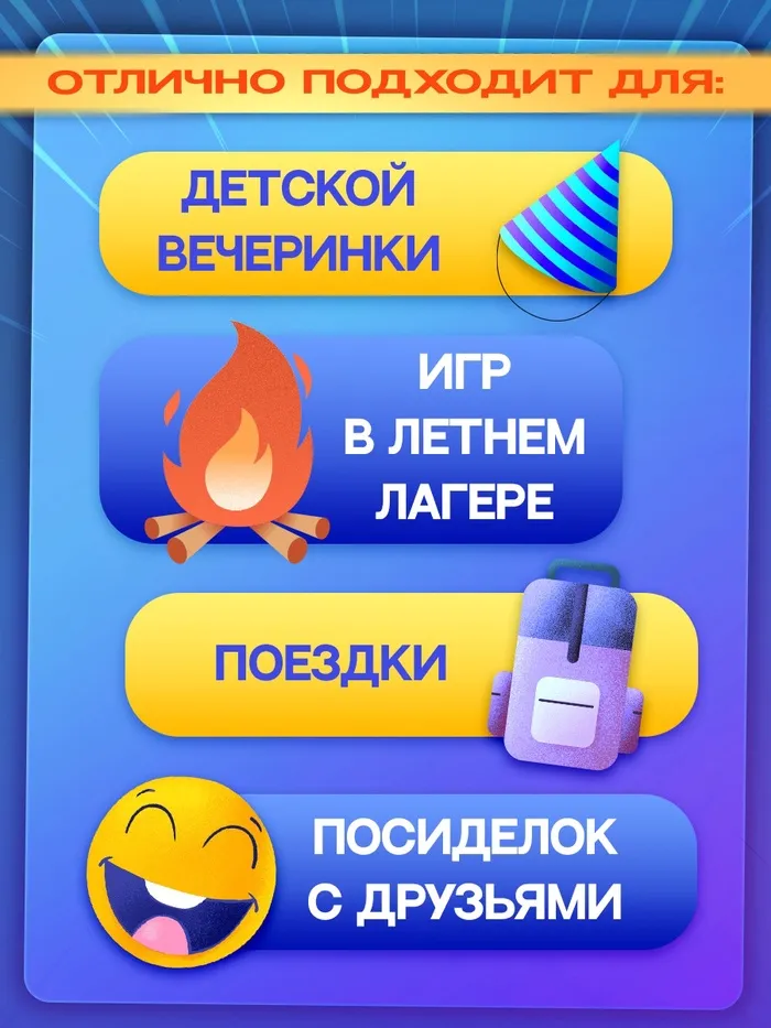 Игра развивает мышление, воображение, память, расширяет кругозор и дарит массу положительных эмоций. Отличное развлечение на любой праздник.