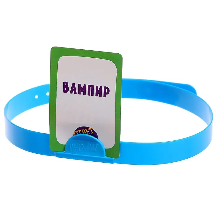 В ней представлены 5 категорий из карт на разные тематики. Вы сможете быть в роли хищного животного, самовара, Бабы-Яги, хирурга и не только. Для этого вам необходимо надеть ободок на голову, закрепить карточку и за 1 минуту догадаться, кто же вы!