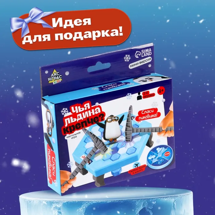 «Чья льдина крепче» — настольная игра для детей от 4 лет. Сюжет перенесёт ребёнка в увлекательную экспедицию по Антарктиде. Обитатели холодного континента — милые и дружелюбные зверята, которым не терпится познакомиться с малышом. Маленькому исследователю предстоит аккуратно взять пробу льда, не побеспокоив греющегося пингвина.