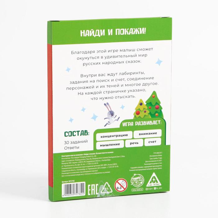 Чем развлечь ребёнка в Новый год и на протяжении зимних каникул? Ответ прямо перед вами — игра «Найди и покажи!». Здесь юного искателя ждут 30 самых разных заданий: лабиринты, задачки на счёт и поиск, соединение персонажей и их теней и многое другое.