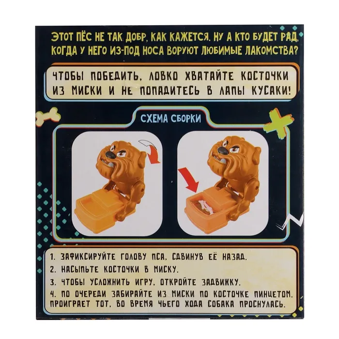 Настольная игра «Не тронь кость!» станет отличным выбором для семейного досуга или веселых встреч с друзьями. Она объединяет участников в динамичной и увлекательной игре, где важны ловкость и точность.