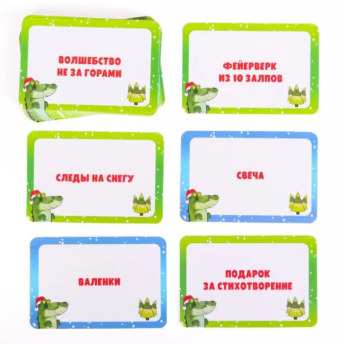 Эта популярная игра дополнит новогодний вечер в кругу семьи. Вытягивайте карточки, объясняйте слова или словосочетания с помощью пантомимы.
