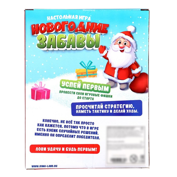 «Новогодние забавы» — настольная игра для детей от 4 лет. Дед Мороз и его друзья обожают веселиться, поэтому придумали увлекательное развлечение. Ребёнку предстоит первым провести все свои 4 фишки по игровому кругу и выстроить их на финишную линию.
