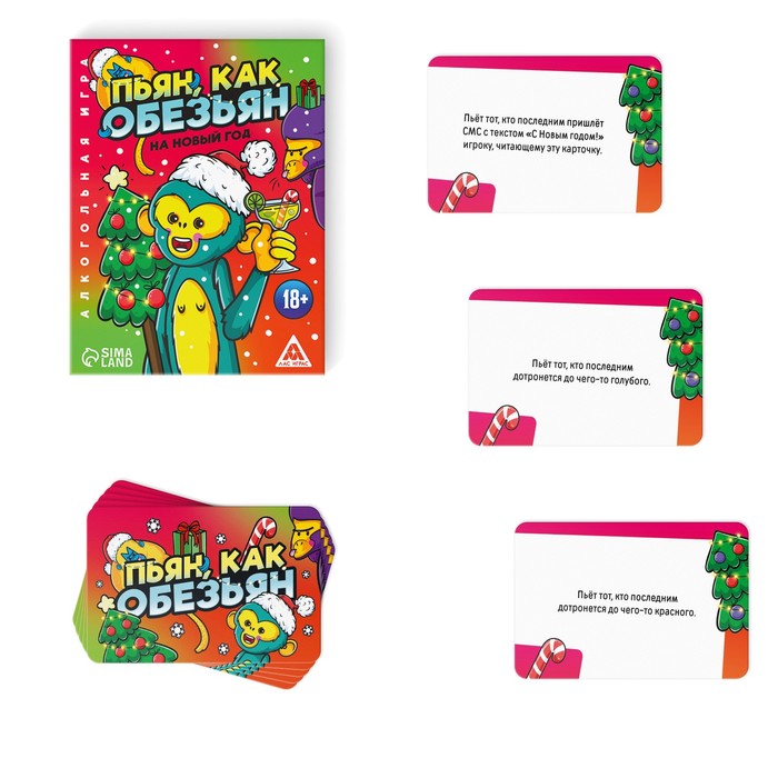 Настольная игра «Новый год: Пьян, как обезьян», новогодняя, 50 карт, 18+ — Характеристики