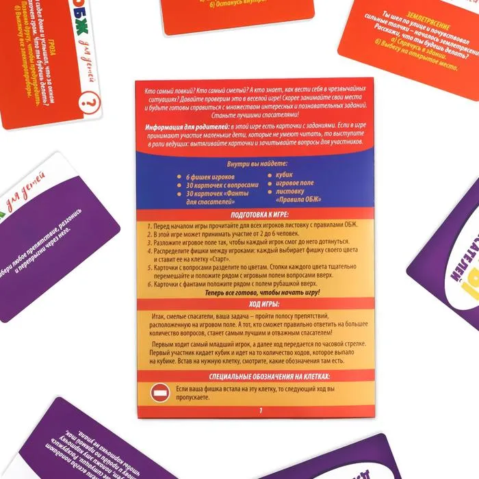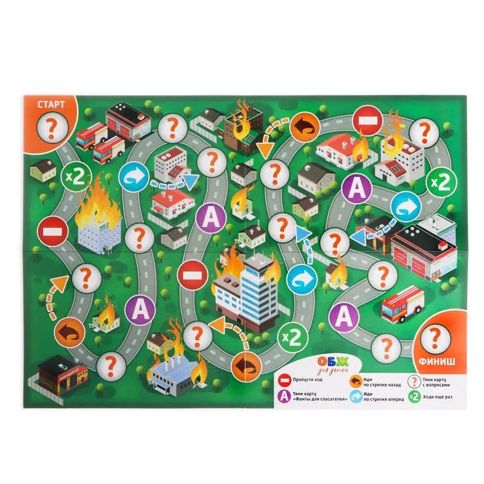 Приветствуем команду отважных спасателей! В этой игре участники смогут посоревноваться в силе, выдержке и знании того, как вести себя в опасных ситуациях, пройдя настоящую полосу препятствий! Ребята будут передвигать фишки по полю, вытягивать карточки, выполнять весёлые задания и отвечать на вопросы по ОБЖ.