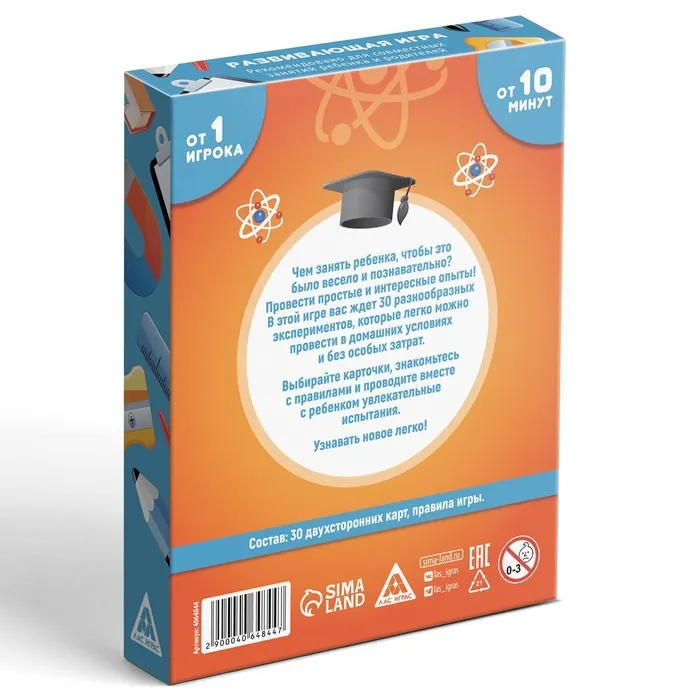 Настольная игра «Опыты для юных гениев. Своими руками», 30 карт, 7+ — Характеристики