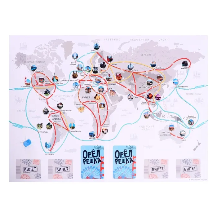 Настольная игра «Орёл или решка. Мир» — захватывающая игра-стратегия, которая подойдёт как для семейного досуга, так и для компании друзей. Яркие моменты на настольной игровой карте вдохновят узнать больше об интересных местах мира.
