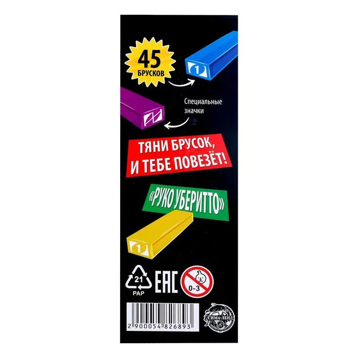 Теперь всемирно известная и всеми любимая игра стала ещё интереснее! Каждый брусок имеет специальные значки, которые необходимо вытягивать по особым правилам.