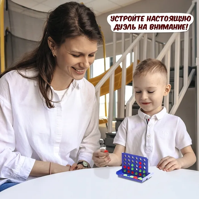 Цель игры — выстроить 4 точки в ряд быстрее соперника. Это простое, но увлекательное занятие подойдет для домашних игр и развлечений вне дома, обучая детей терпению и внимательности.