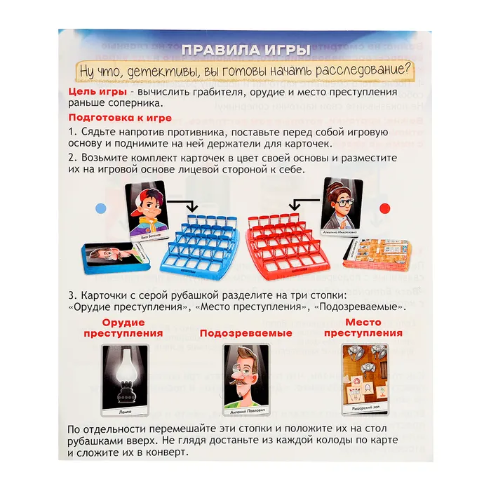 - Как только вы поняли, что готовы назвать три составляющие преступления, объявите: «Дело раскрыто» и посмотрите карты из конверта.