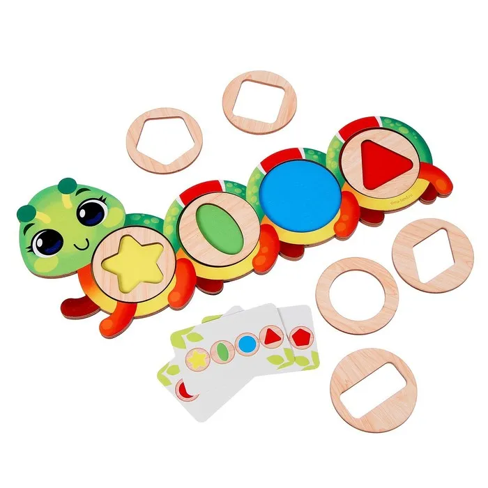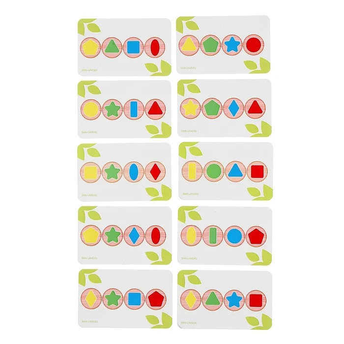 - Предложите крохе повторить по образцу: разместите детали в деревянной основе так, как указано на карточке.