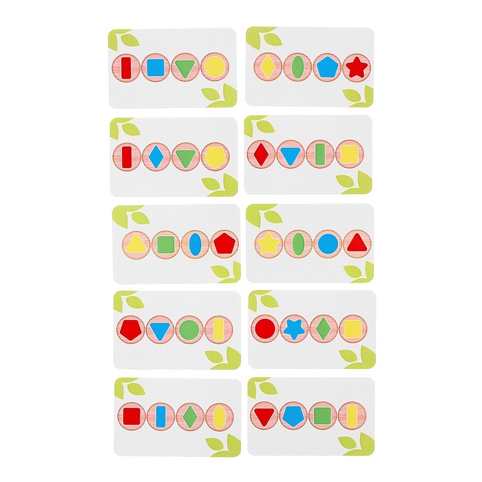 Игра «Повтори по образцу» изготовлена из дерева, а значит, она прочная и безопасная. В набор входят карточки со схемами, яркие фигурные детали и деревянная основа.
