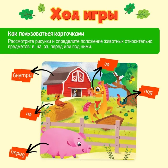 Превратите процесс обучения в увлекательную игру! Придумывайте истории про животных и развивайтесь с настольной игрой для разучивания предлогов «Привет с фермы»!