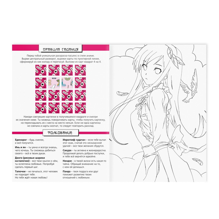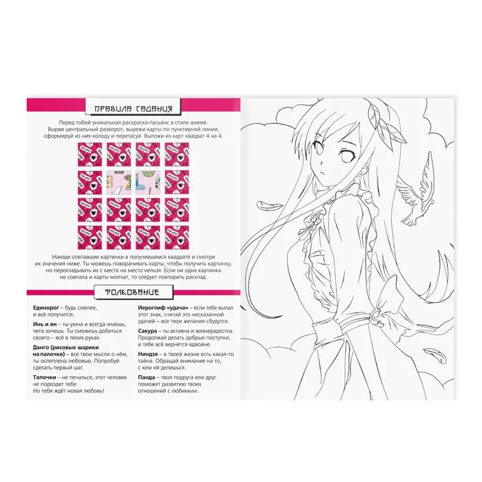 Настольная игра-раскраска «Гадания в стиле аниме», 10 страниц, 7+ — Характеристики
