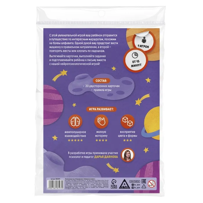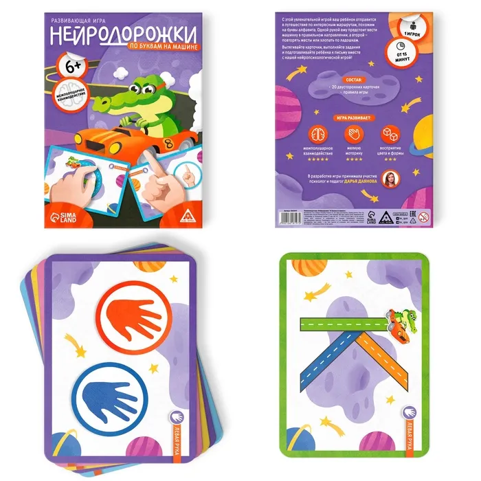 Настольная игра развивающая «Нейродорожки. По буквам на машинке», 20 карт, 6+ — Характеристики