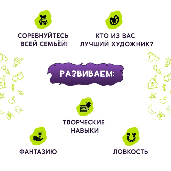 - Игра тренирует воображение, смекалку и умение работать в команде. Подходит детям от 6 лет и взрослым — каждый сможет проявить себя, независимо от художественных навыков.