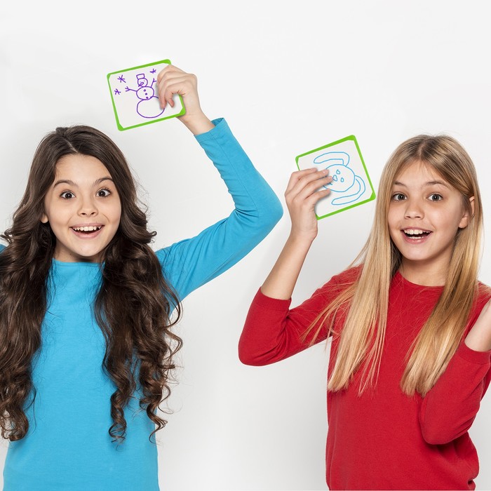- Карточки и планшеты сделаны из плотного картона, маркеры легко стираются.