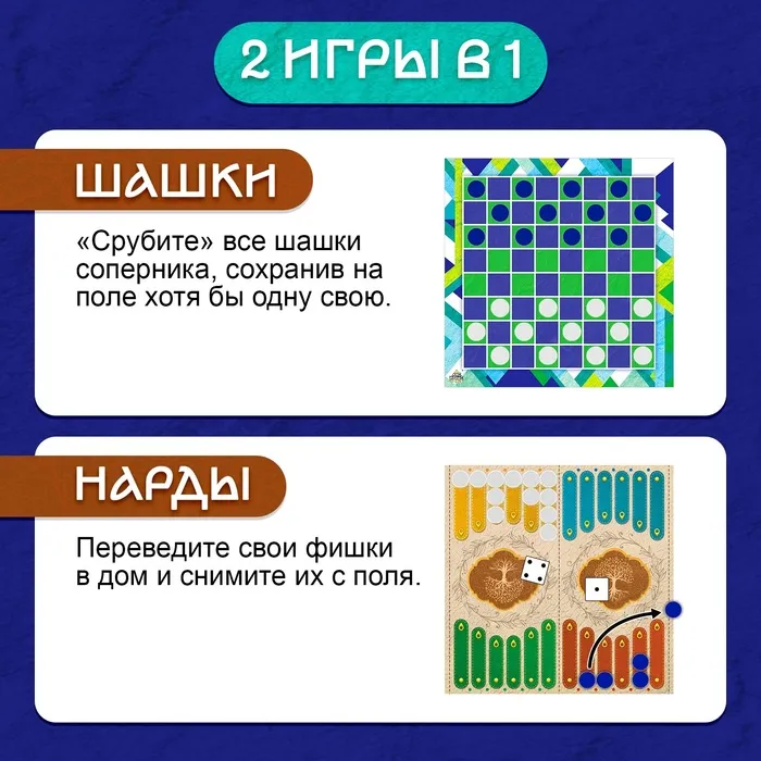 Шашки» и «Нарды» — набор настольных игры для детей от 5 лет. Увлекательные настолки станут интересным времяпровождением и полезным инструментом для развития логических и коммуникативных навыков.