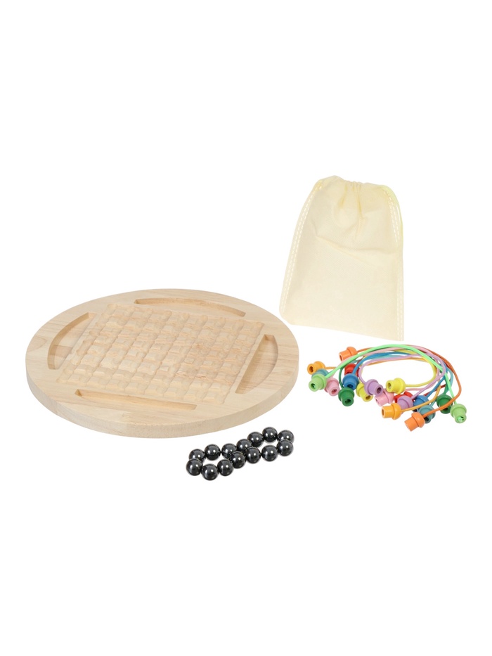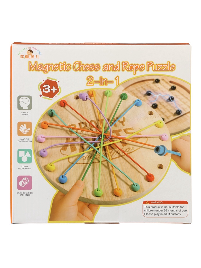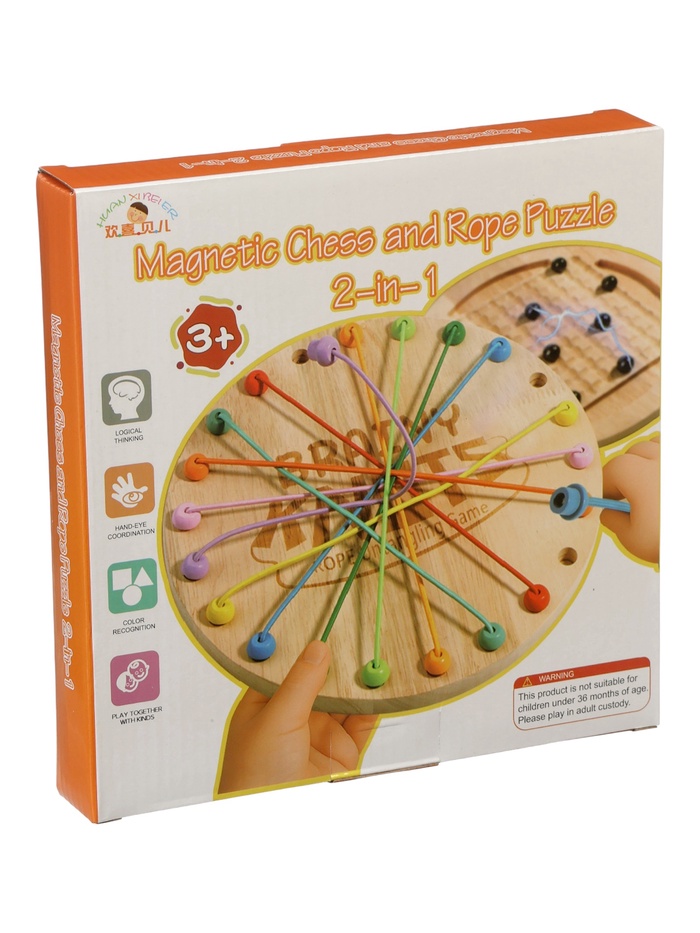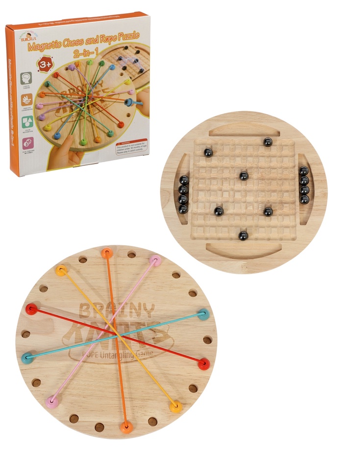 Игровой набор “Шнурочки и магнитный бой” объединяет две разные стратегии в одном формате. Первая часть предлагает ребёнку распутывать шнурки, переставляя их концы в свободные ячейки. Каждый шаг требует аккуратности и продуманности, а сам процесс напоминает небольшую головоломку, где важно увидеть правильную последовательность. Вторая часть — это магнитный поединок, где участники по очереди ставят шарики на поле. Если к шару притягиваются другие — игрок забирает их себе. Такая механика добавляет азарта, учит просчитывать последствия и ждать хода соперника.
