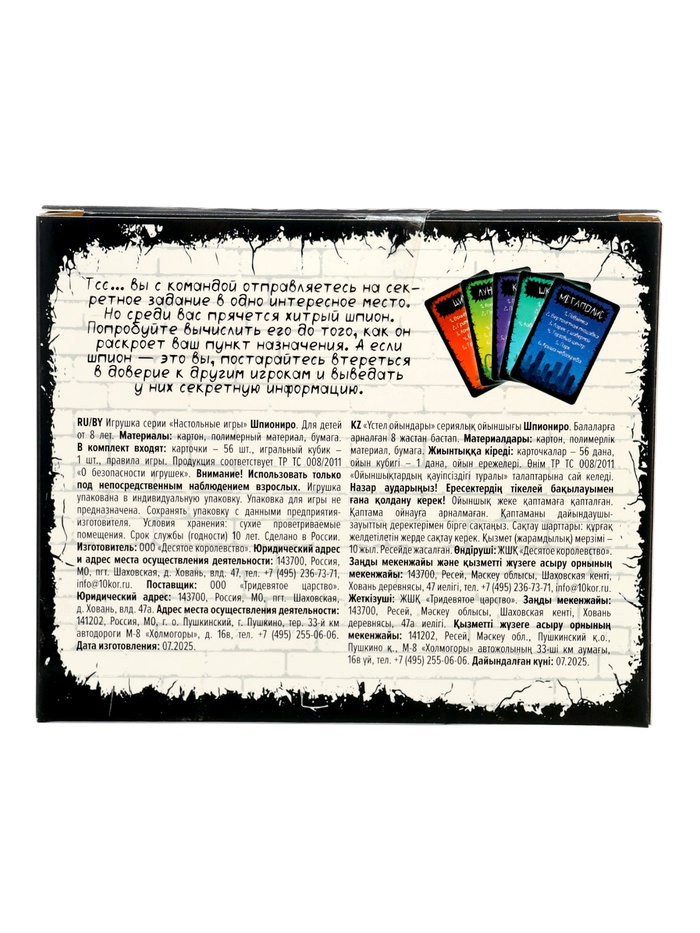 Настольная игра «Шпиониро» — Характеристики